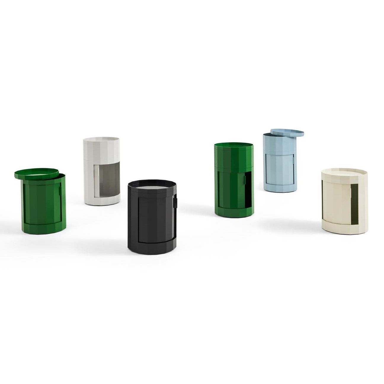 Der Facet-Schrank ist eine multifunktionale Aufbewahrungslösung, die mit einer schwenkbaren, integrierten Tür und Rollen ausgestattet ist, die eine freie Bewegung ermöglichen. Seine außergewöhnliche Flexibilität ermöglicht eine perfekte Anpassung an die Umgebung. Je nachdem, wo Sie ihn platzieren, eignet er sich hervorragend als Nachttisch, Beistelltisch oder Organizer für Schreibwaren im Heimbüro.