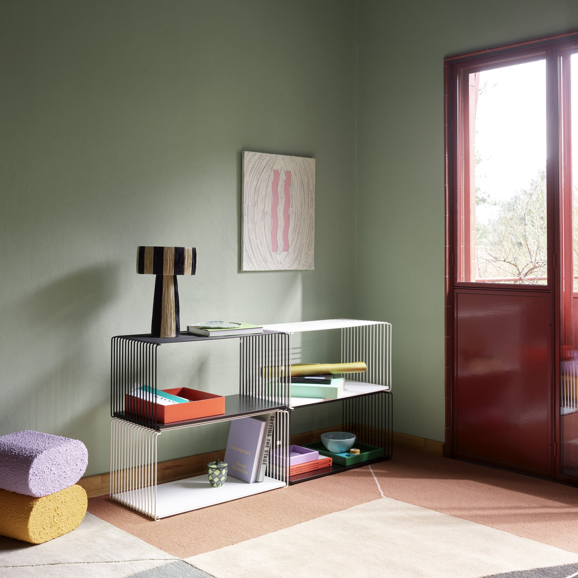 PanTon Wire ist ein ikonisches modulares System, das 1971 vonVerner PanTon entworfen wurde. für die dänische MarkeMontana. Dies ist ein zeitloses Beispiel für skandinavisches Design – roh in der Form, optisch leichtund gleichzeitigelegant und sehr funktional.