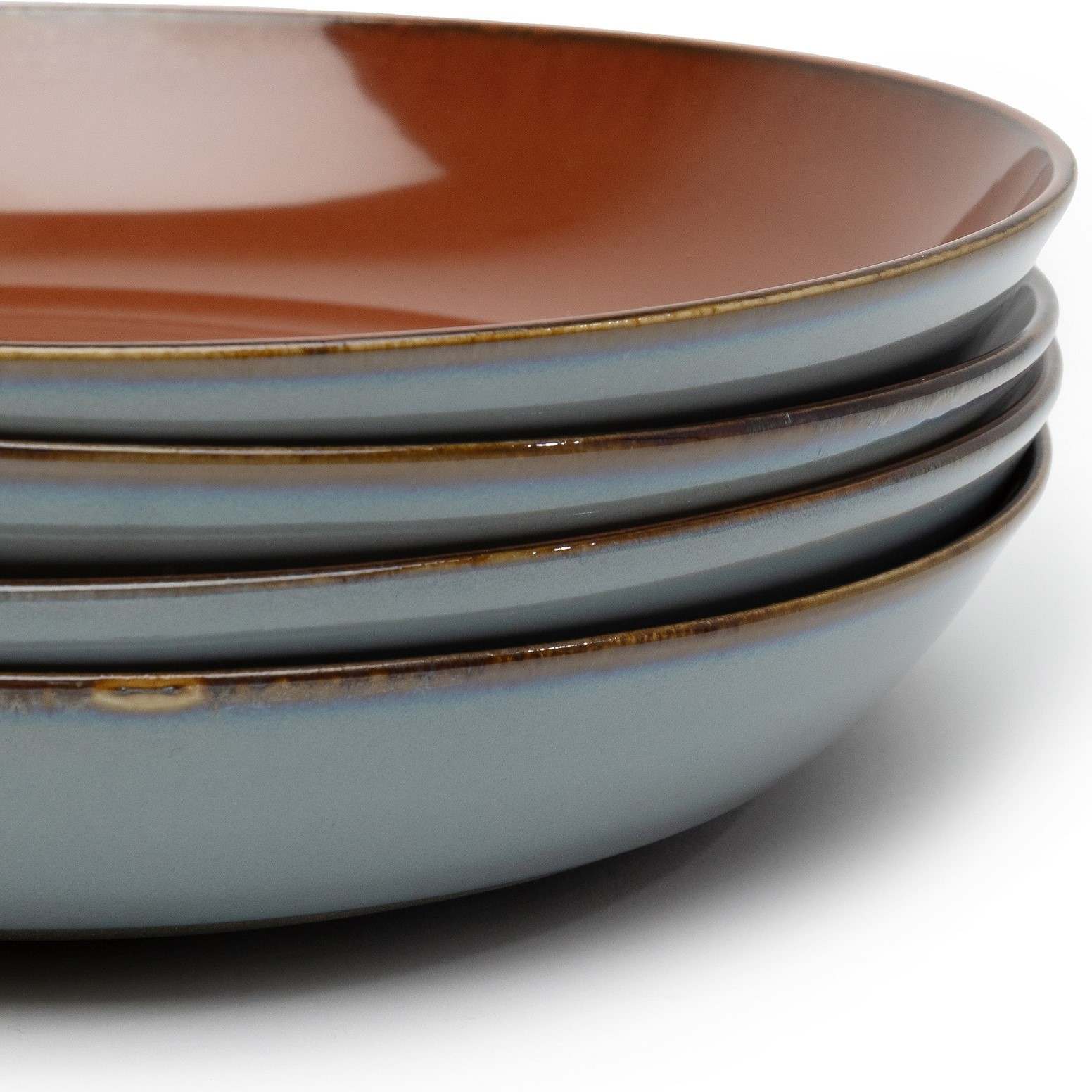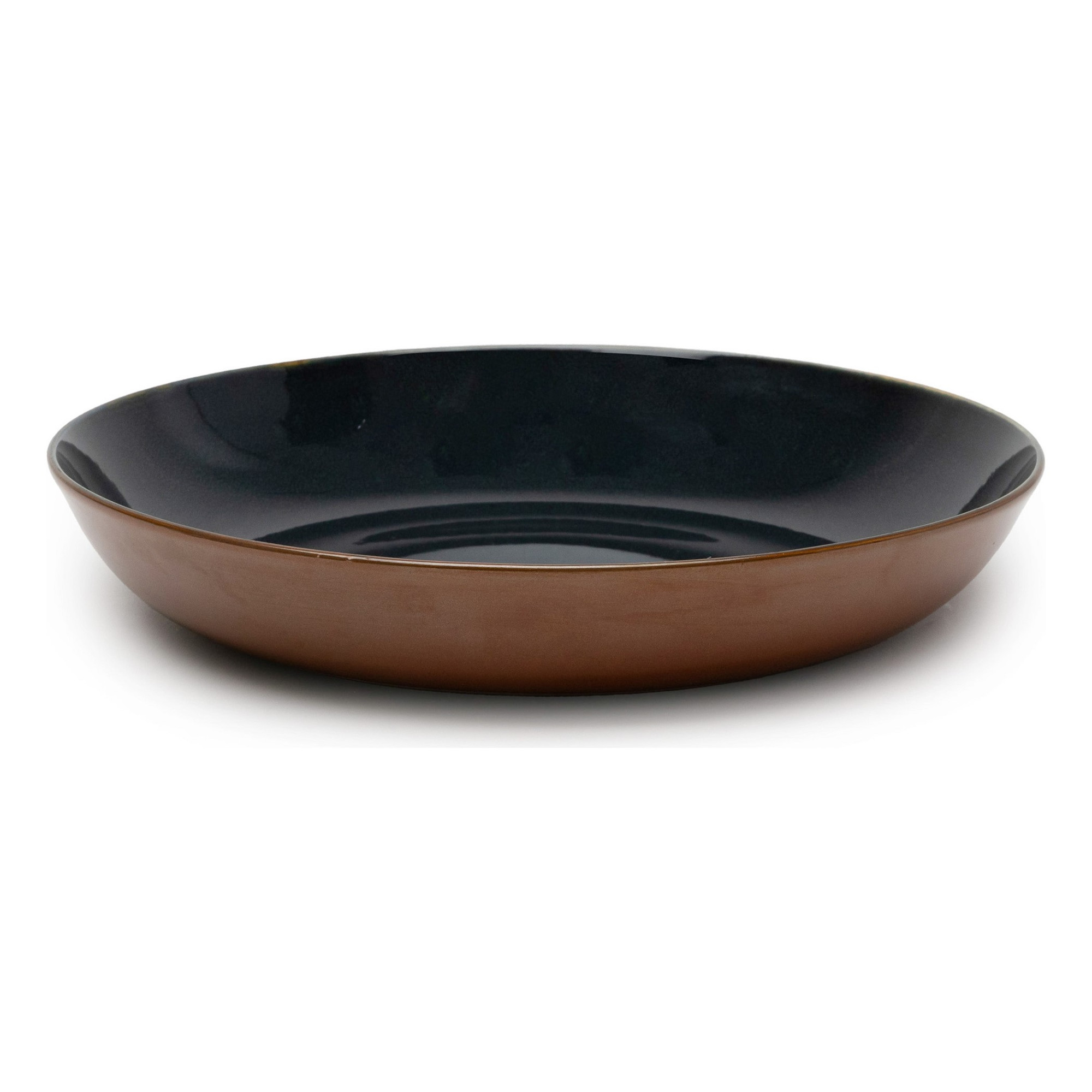 Tiefer Speiseteller aus der Terres de Rêves-Kollektion der belgischen Marke Serax Er besticht durch sein langlebiges Steingut und den angenehmen zweifarbigen Farbton, der dem Tisch Wärme und Ausdruckskraft verleiht. Glasierte Oberfläche unterstreicht den einzigartigen Charakter des Tellers – jedes Stück ist dank der manuellen Veredelung ein Unikat. Dieser Serax-Keramikteller ist spülmaschinen-, mikrowellen- und backofenfest (bis 180 °C) und eignet sich daher sowohl für alltägliche Mahlzeiten als auch für elegante Abendessen.