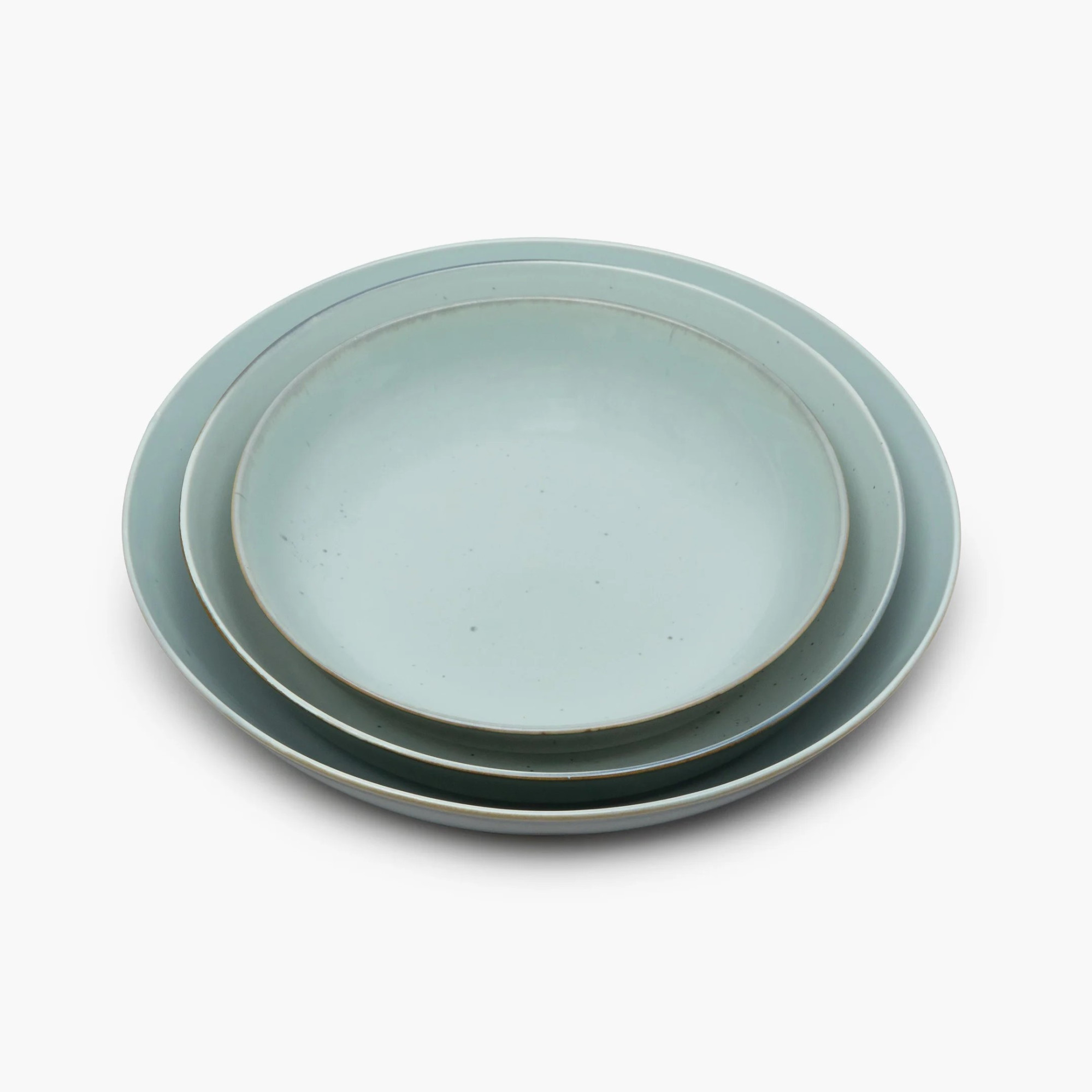 Tiefer Speiseteller aus der Terres de Rêves-Kollektion der belgischen Marke Serax Es besticht durch sein langlebiges Steinzeug und den angenehmen, hellblauen Farbton. Glasierte Oberfläche unterstreicht den einzigartigen Charakter des Tellers – jedes Stück ist dank der manuellen Veredelung ein Unikat. Dieser Serax-Keramikteller ist spülmaschinen-, mikrowellen- und backofenfest (bis 180 °C) und eignet sich daher sowohl für alltägliche Mahlzeiten als auch für elegante Abendessen.