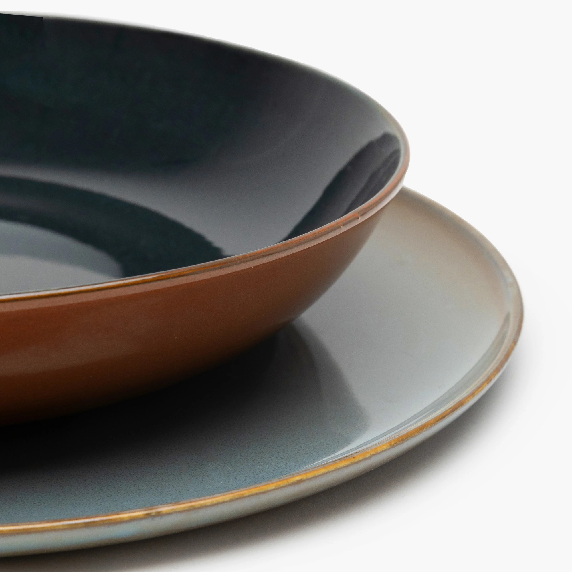 Tiefer Speiseteller aus der Terres de Rêves-Kollektion der belgischen Marke Serax Es besticht durch sein langlebiges Steingut und den energiegeladenen, zweifarbigen Farbton, der dem Tisch Wärme und Ausdruckskraft verleiht. Glasierte Oberfläche unterstreicht den einzigartigen Charakter des Tellers – jedes Stück ist dank der manuellen Veredelung ein Unikat. Dieser Serax-Keramikteller ist spülmaschinen-, mikrowellen- und backofenfest (bis 180 °C) und eignet sich daher sowohl für alltägliche Mahlzeiten als auch für elegante Abendessen.